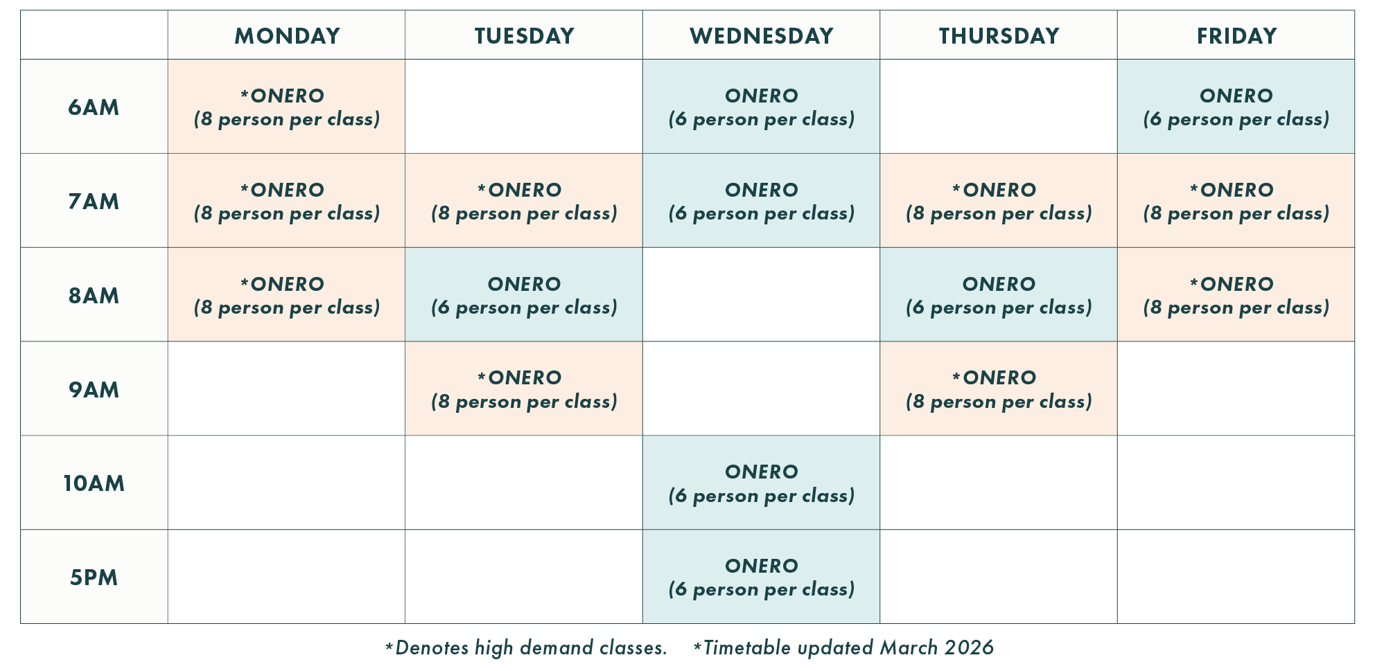ONERO® class timetable.